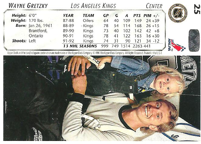 Here's one of my favorite cards from my collection, Wayne Gretzky #25 from the 1992-93 Upper Deck set.