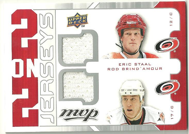 Here's a 2 On 2 Jersey of a few guys from the Carolina Hurricanes, 4 swatch 2 colors.